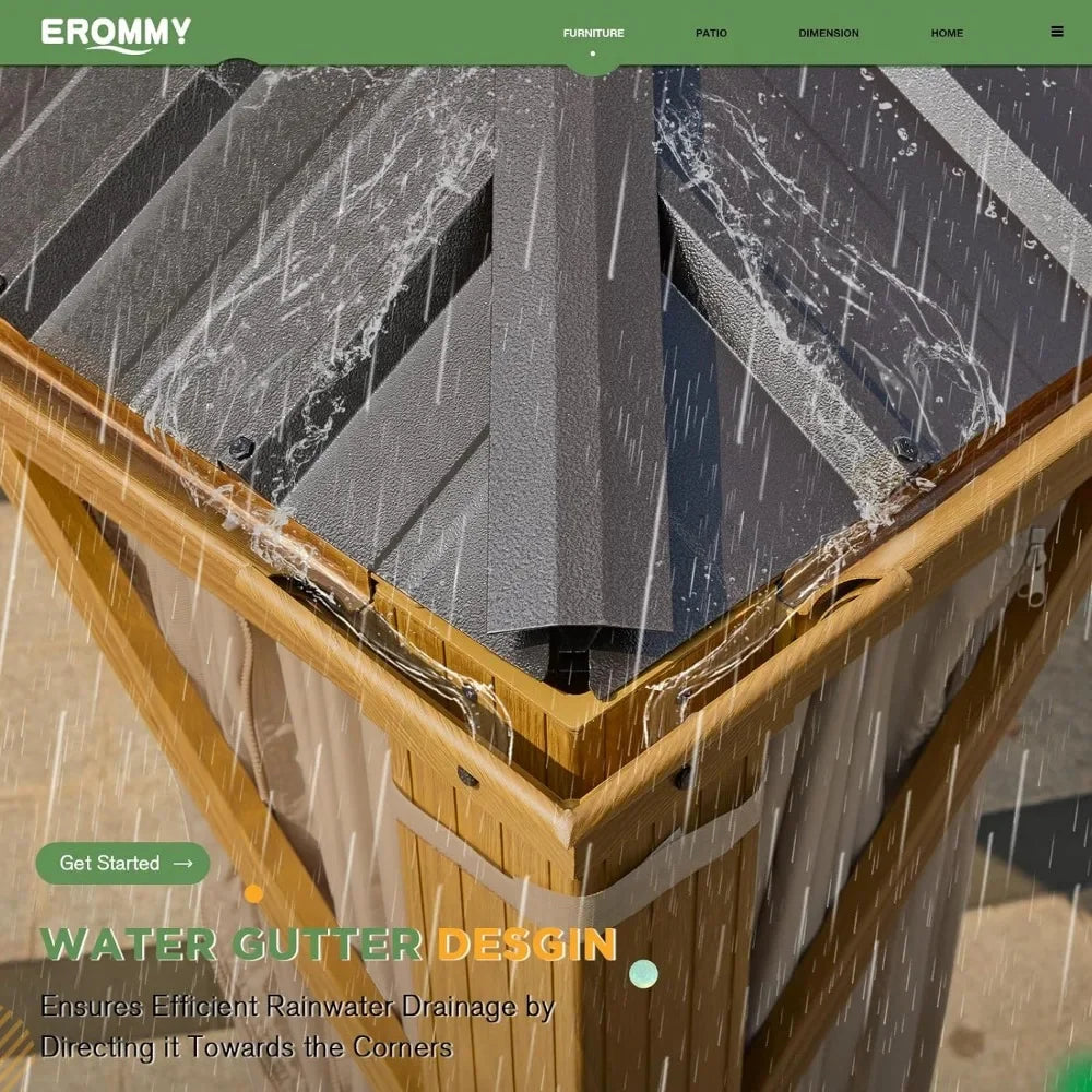 - 【Eaves & Drainage】 - The eaves' unique design facilitates the smooth flow of rainwater and snow from its leaking holes to the ground, preventing accumulation and water seepage that could cause damage. This ensures that the area below remains undisturbed, making it ideal for outdoor gatherings, even during rainy or snowy weather.