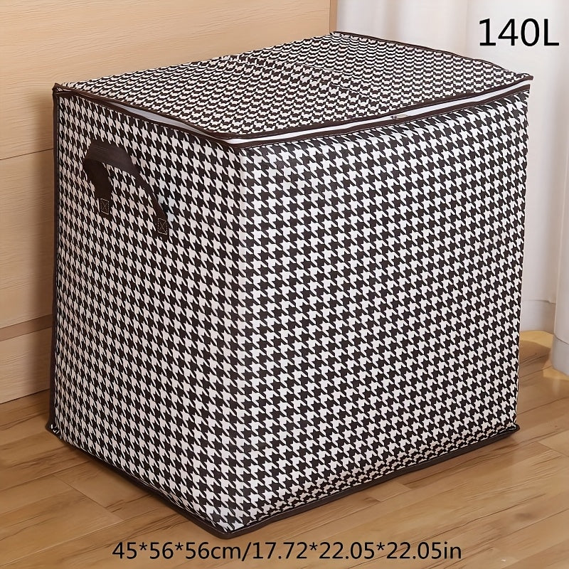 1pc Foldable Woven Storage Bag with Fixed Shoulder Strap, Casual Style, Hand Wash, Zipper Closure, Waterproof Clothes & Quilt Organizer for Moving, Travel - Casual Occasion, Thick