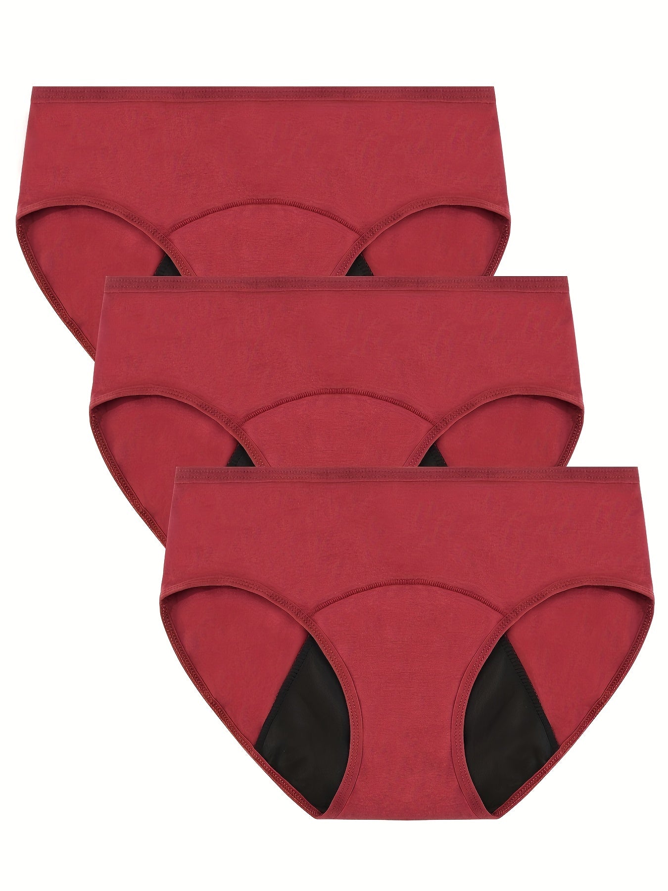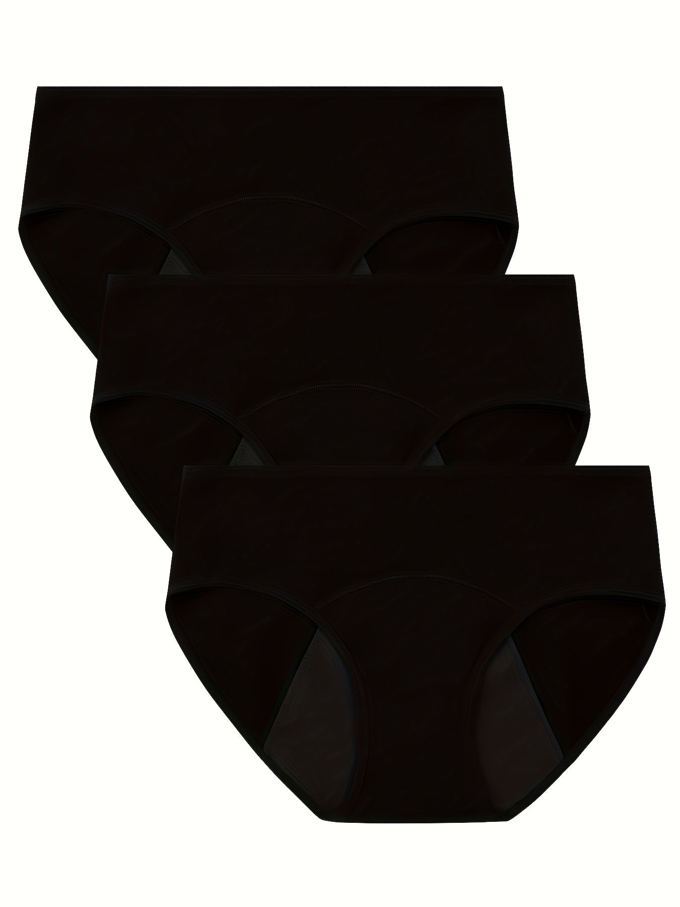3pcs Simple Period Panties, Comfort Mid-high Waist Physiological Briefs, Breathable Postpartum Panty, Menstruation Panties, Women's Underwear & Lingerie