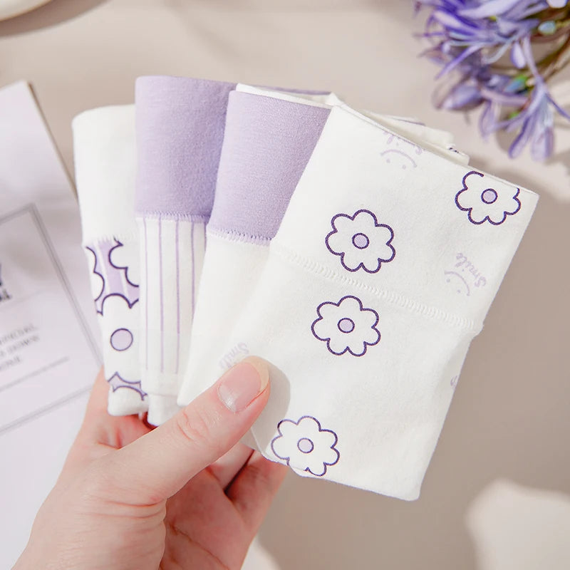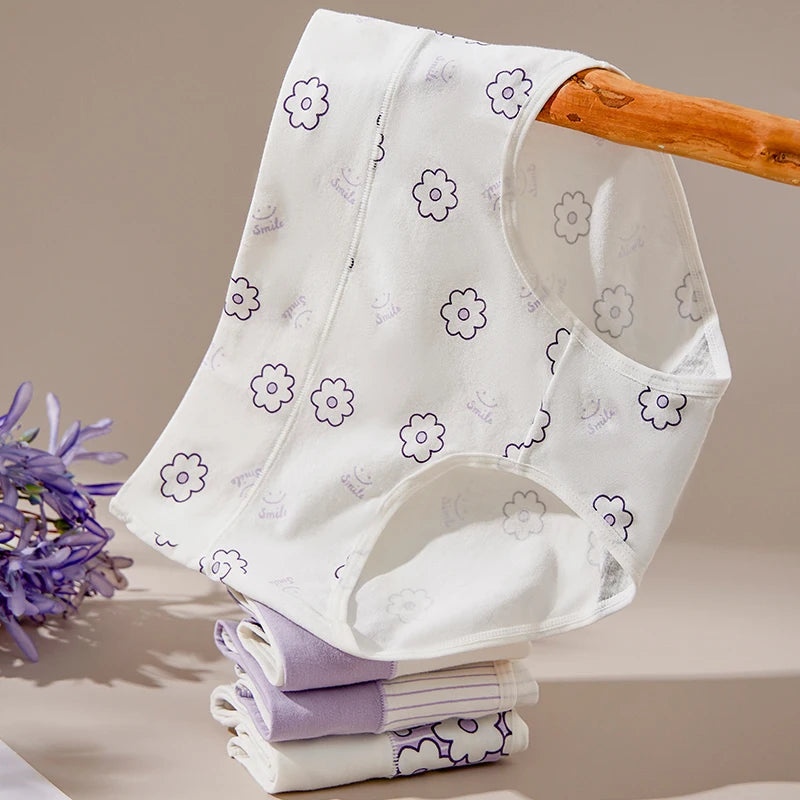4Pcs/Set Cotton Panties Women High Waist Slimming Underwear Cute Print Young Girls Briefs Plus Size M-4XL Soft Female Lingerie