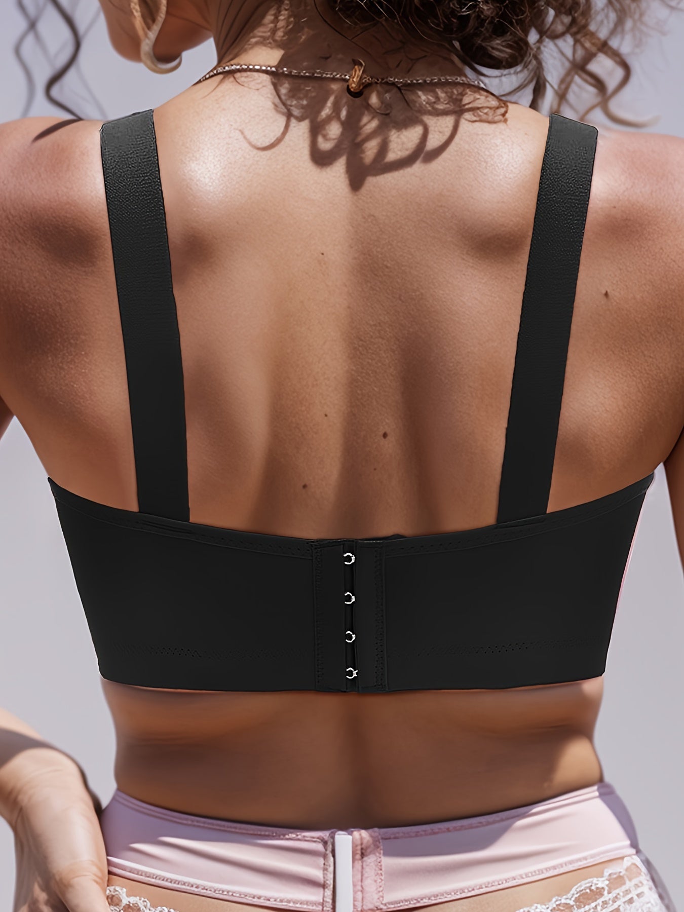 5pcs ESSELEGANCE Push-Up Bras for Women - Adjustable, Comfort Fit with Floral Lace Pattern, V-Neck, Nylon & Elastane Blend, Machine Washable - Available in Black, Red, Beige, Pink, & Purple