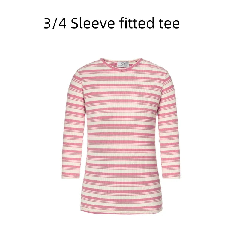Ribbed 3/4 Sleeve Fitted Tee: cotton + viscose