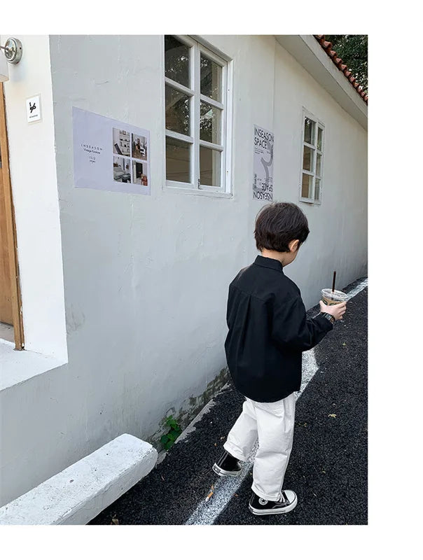 Boys Baby's Kids Blouse Jacket Outwear 2023 Black Spring Autumn Shirts Cotton Gift Plus Size Children's Clothing