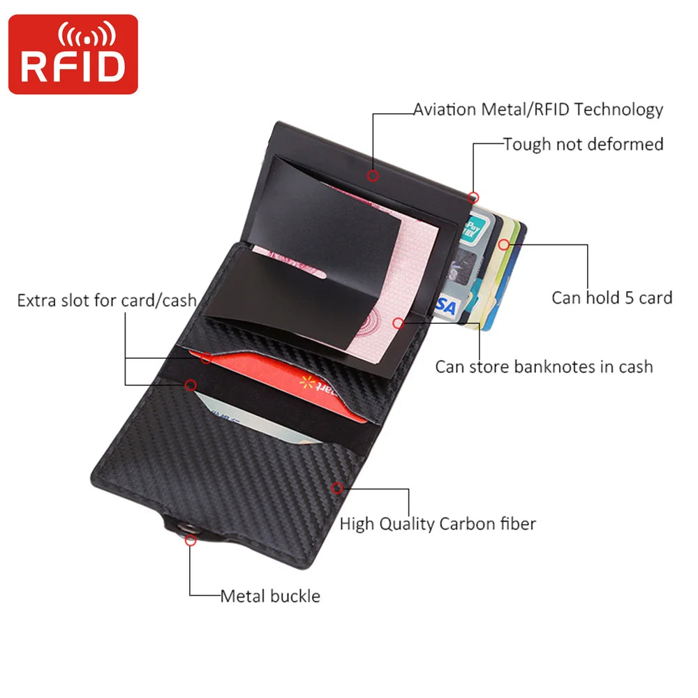 Carbon Fiber Rfid Blocking Men ID Credit Card Holders Wallet Leather Metal Business Bank CreditCard Cardholder Case Carteras