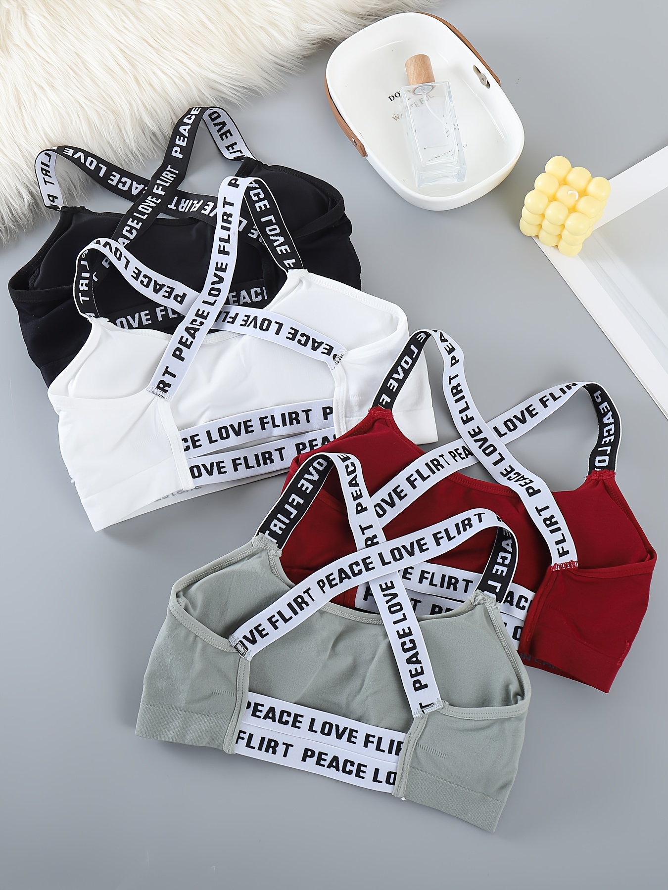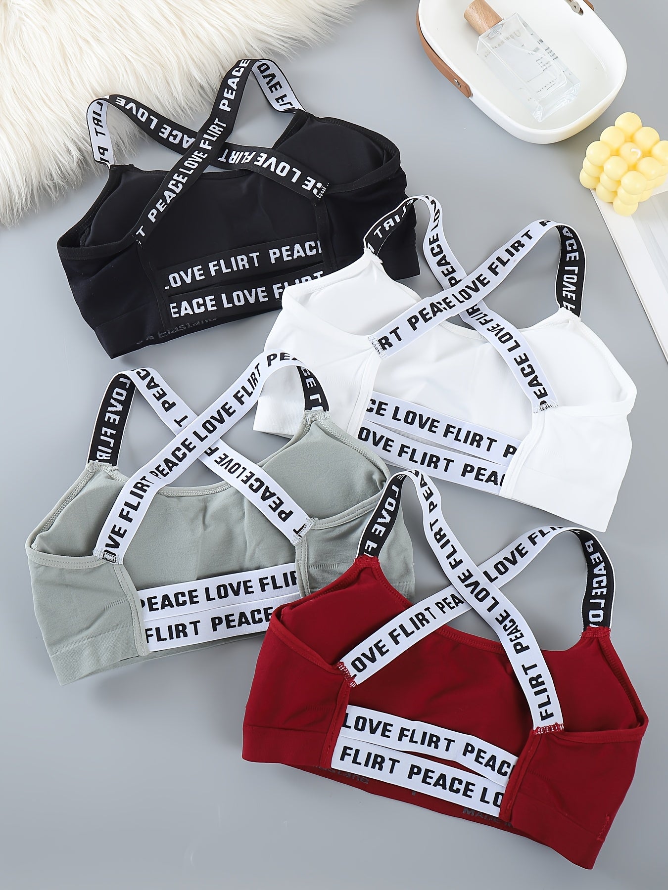 Comfortable And Breathable Set of 4 Lettered Sports Bras, Sleeveless Round Neck Activewear - Shockproof Running And Yoga Sports Underwear, Padded Wireless Women's Lingerie And Multi-Pack Sports Bras