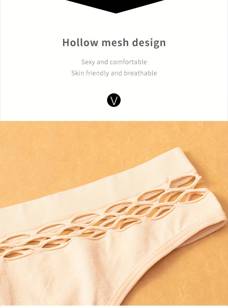 Cut Out Solid Thongs, Soft & Comfy Stretchy Intimates Panties, Women's Lingerie & Underwear