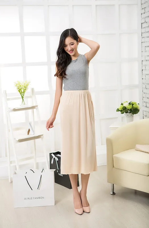 Woman Half Slips Modal Solid Skirt Petticoat Knee Length dress Lady Underskirts Vestidos Summer Cheap Skirts Underdress Summer