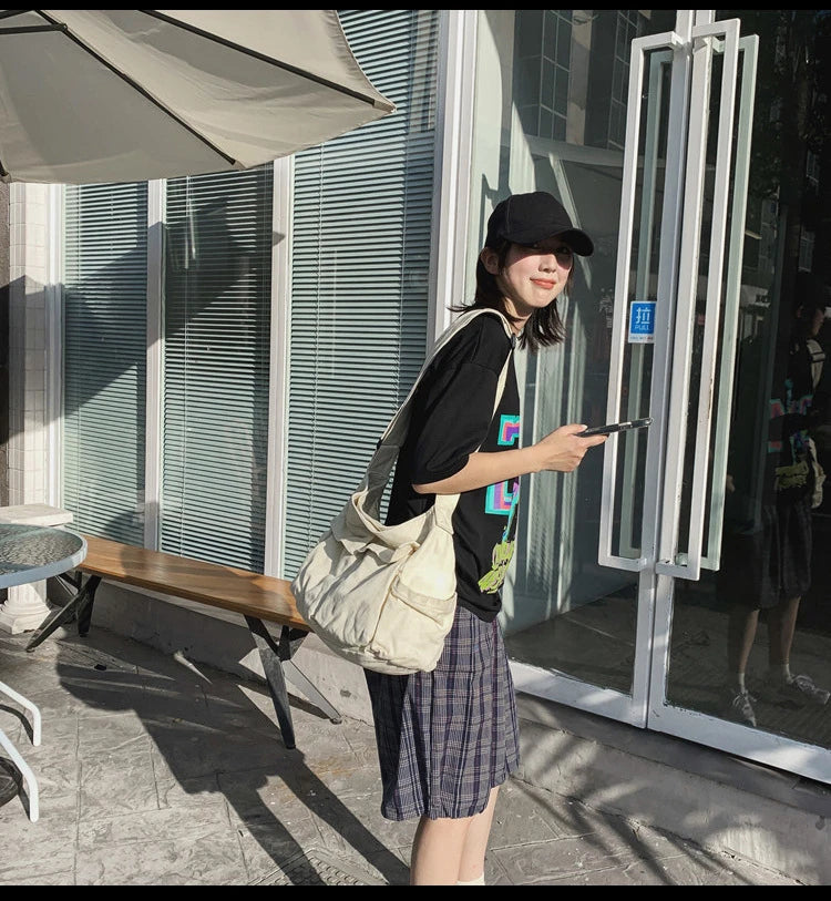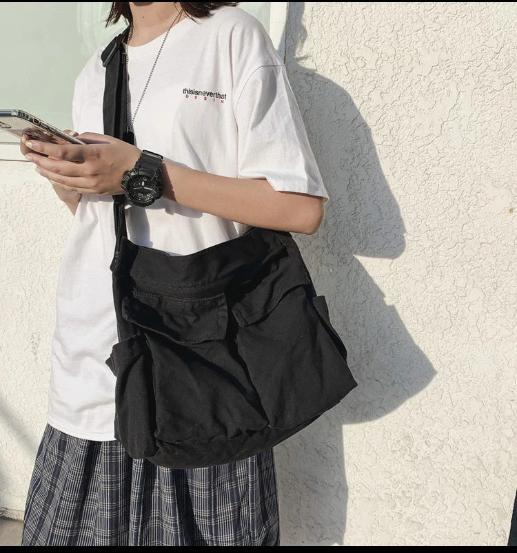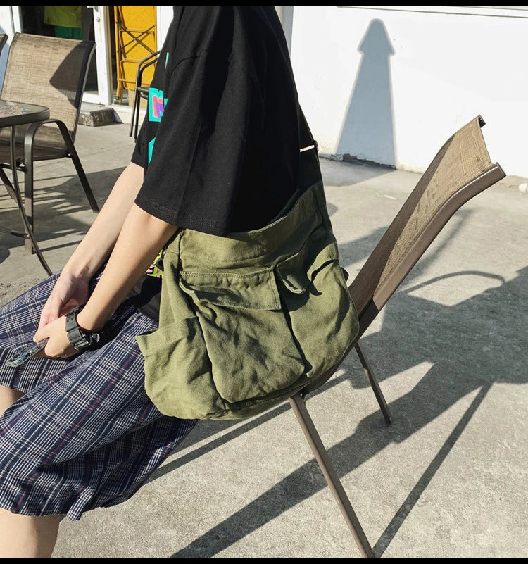 Women's School Messenger Bags For Women Shoulder Ladies Designer Handbag Solid Large Capacity Casual Canvas Shoulder Female Bags